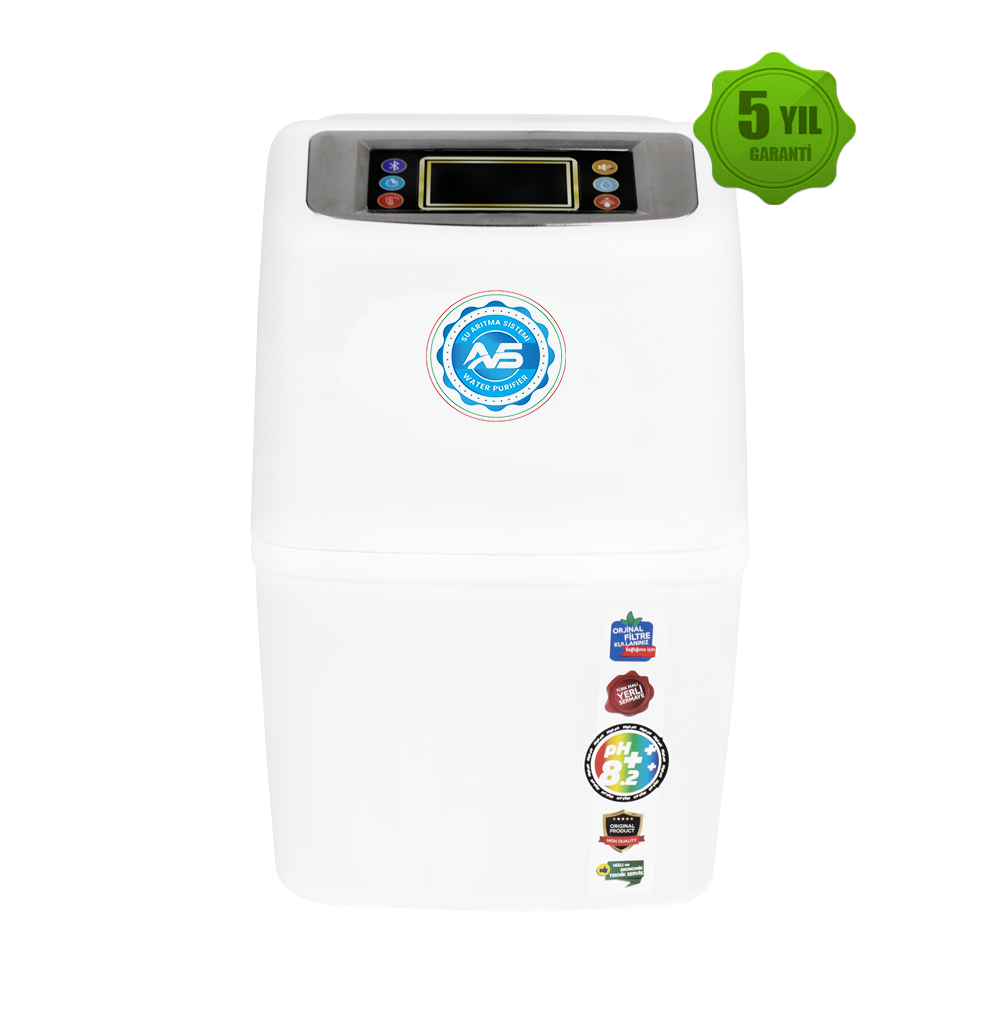 Ürün Teknik Özellikleri 12” Inline NSF 5 Micron Sediment Filtre 12” Inline NSF GAC Karbon Filtre 12” Inline NSF Blok Karbon Filtre 75 GPD EMEM Membran Filtre 10” Inline Post Karbon Filtre Alkali Filtre Lüks Musluk 2.2 Galon Metal PAE Basınç Denge Tankı Yapay Zeka Desteği Adroid İşletim Sistemi Kontrolü LED Panel Gösterge Sistemi Filtre Takip Sistemi 7-24 TDS Ölçümü (Su Analizi) Sızıntı Sensörlü Sesli Alarm